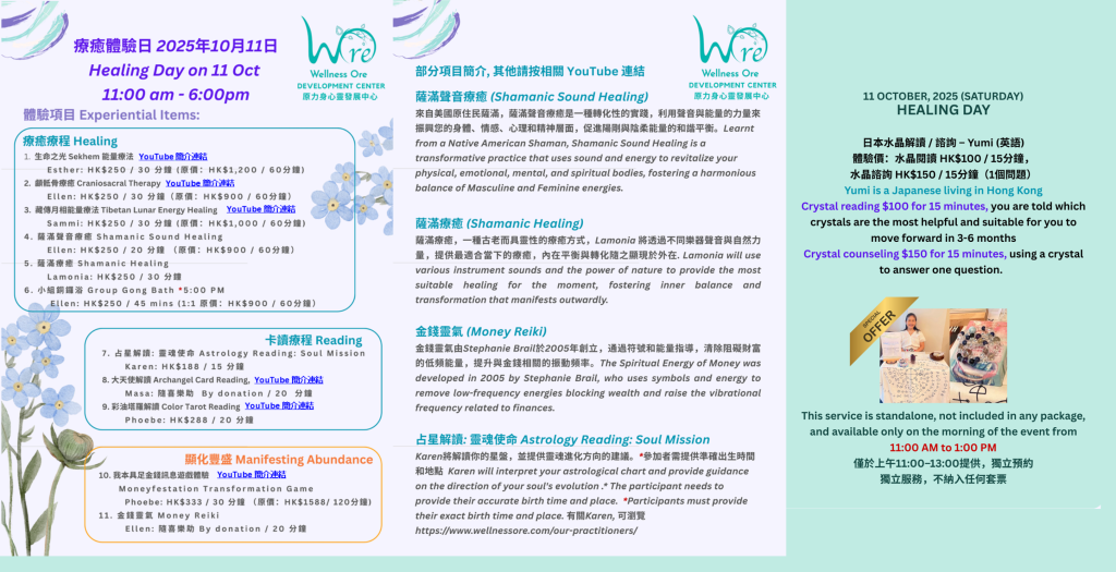使用聲音引導放鬆,平衡身心,促進內在平靜。(體驗 ~ 20 分鐘/節)